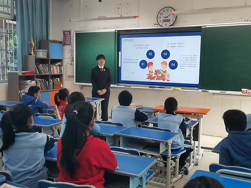 二是立足道德教育加强诚信宣讲,助力构建成效的校园环境。2023年4月8日,思明区检察院青年干警依托“阳光小队”志愿服务开展诚信教育进校园活动,在文安小学开展诚信做人品德主题教育,从何为诚信、诚信格言、不诚信的表现、如何弘扬诚信美德四方面介绍了如何诚信做人,切实引导学生自觉将诚信理念转化为实际行动,营造良好的诚信氛围。