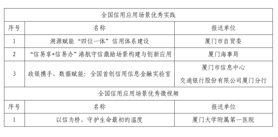 厦门市报送的这些信用应用场景实践成果集中展现了厦门在信用体系建设领域的创新探索与显著成效。