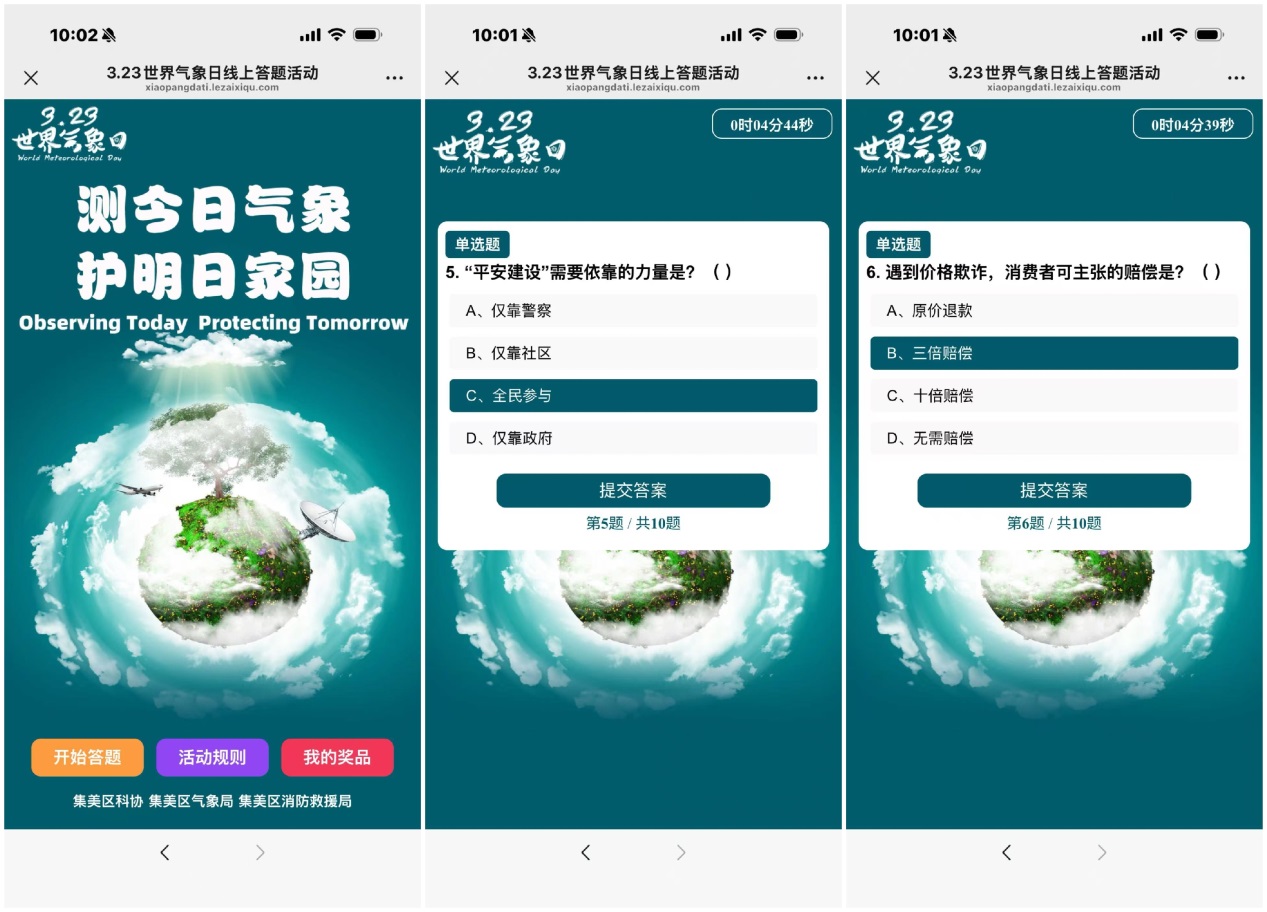 扎实推进社会信用体系建设,集美区气象局联合集美区科学技术协会、集美区消防救援局,依托“集美科普”官方微信公众号,精心开设诚信宣传有奖知识问答专栏,以互动答题形式,向公众普及诚信知识与气象科普内容,推动诚信理念落地生根。